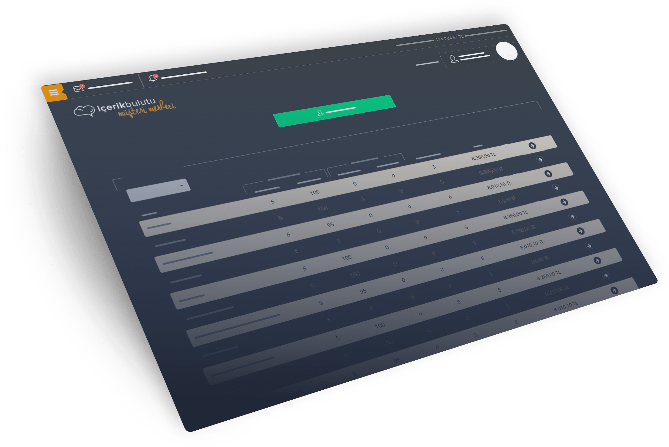 İçerik hizmeti verdiğiniz müşteri hesaplarına ait tüm bilgileri okunması kolay, tek bir gösterge tablosunda görüntüleyebilirsiniz. Tüm faaliyetlerinizi tek bir alan üzerinden takip edebilirsiniz.