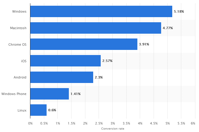 Örneğin; 2018 4.çeyreğinde dünya genelinde dönüşüm oranları cihazlara göre aşağıdaki gibi değişmektedir.