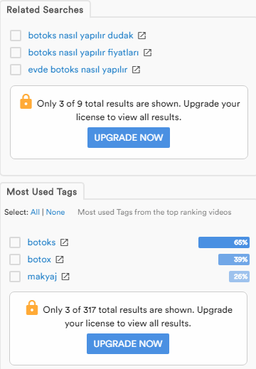Bu, videonuzu optimize etmek için uzun kuyruklu anahtar kelimeler keşfetmek , hatta dikkate almadığınız daha az rekabetçi konuları bulmak için kullanışlıdır .