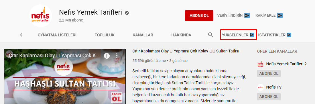İşte Nefis Yemek Tarifleri’nin YouTube kanalından bir örnek: