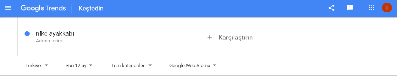 - Arama motorunuzu YouTube, Alışveriş, Görseller ve Haberler ile değiştirerek içeriğinizi çeşitlendirin. ( Örneğin; hedef anahtar kelimeniz için web arama trendindeki azalmaya karşılık YouTube arama trendinde artış olabilir. Bu da bu anahtar kelimeyi hedefleyen video içerik hazırlamanız anlamına gelebilir.)