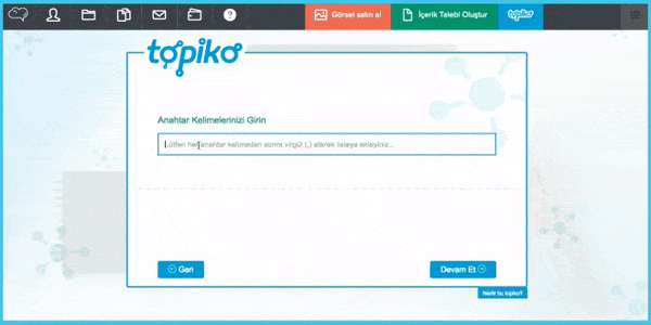Her ay onlarca konu başlığı bulmak, en az içerik üretimi kadar yorucu olmaya başladıysa size harika bir haberimiz var! İçerik Bulutu’nun en yeni akıllı teknolojileri arasında yer alan Topiko sayesinde; blog, uzun blog ve liste içerikleriniz için etkileyici, özgün ve yaratıcı konu başlıklarına sahip olabilirsiniz.