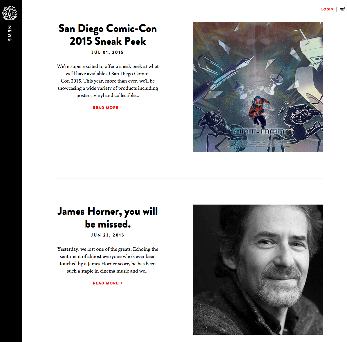 Kült posterler, soundtrack albümleri ve oyuncaklar tedarik eden Texas merkezli sitenin, içerisinde ilgili haberlerin ve sıra dışı içeriklerin yer aldığı “News” sekmesi ile bambaşka bir blog dünyasının kapıları açılıyor. Mondo’nun blogunun en iyi özelliği ise okuyucularına sınırlı sayıda basılmış (limited edition) ürünlere ait detaylı görüntü sunan ve yüksek kalitedeki fotoğrafları ve görselleri.