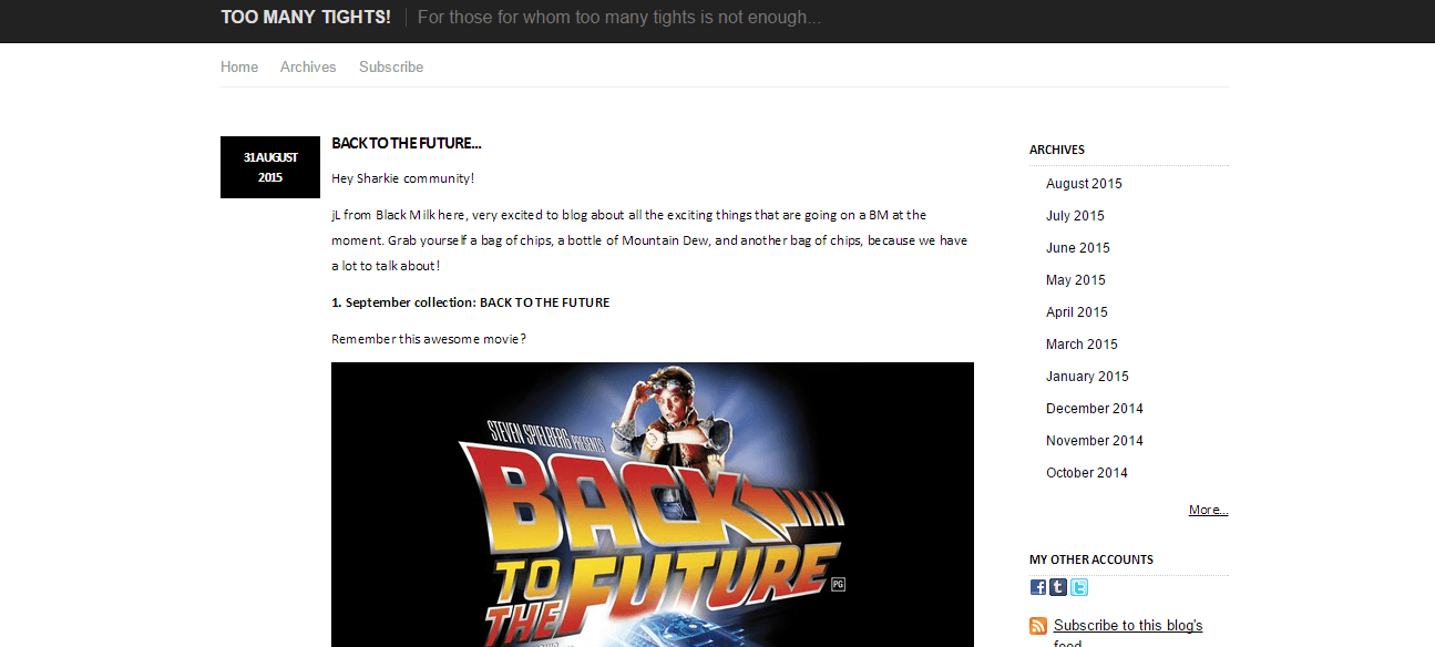 Avusturalyalı kadın moda alışveriş satış sitesi,  müşterilerine müthiş kullanıcı odaklı bir e-ticaret deneyiminin yanı sıra blogu ‘Too Many Tights’ı sunuyor. Eğlenceli ve zeka pırıltılarıyla dolu içerikler, okuyucuların büyük ilgisini topluyor.
