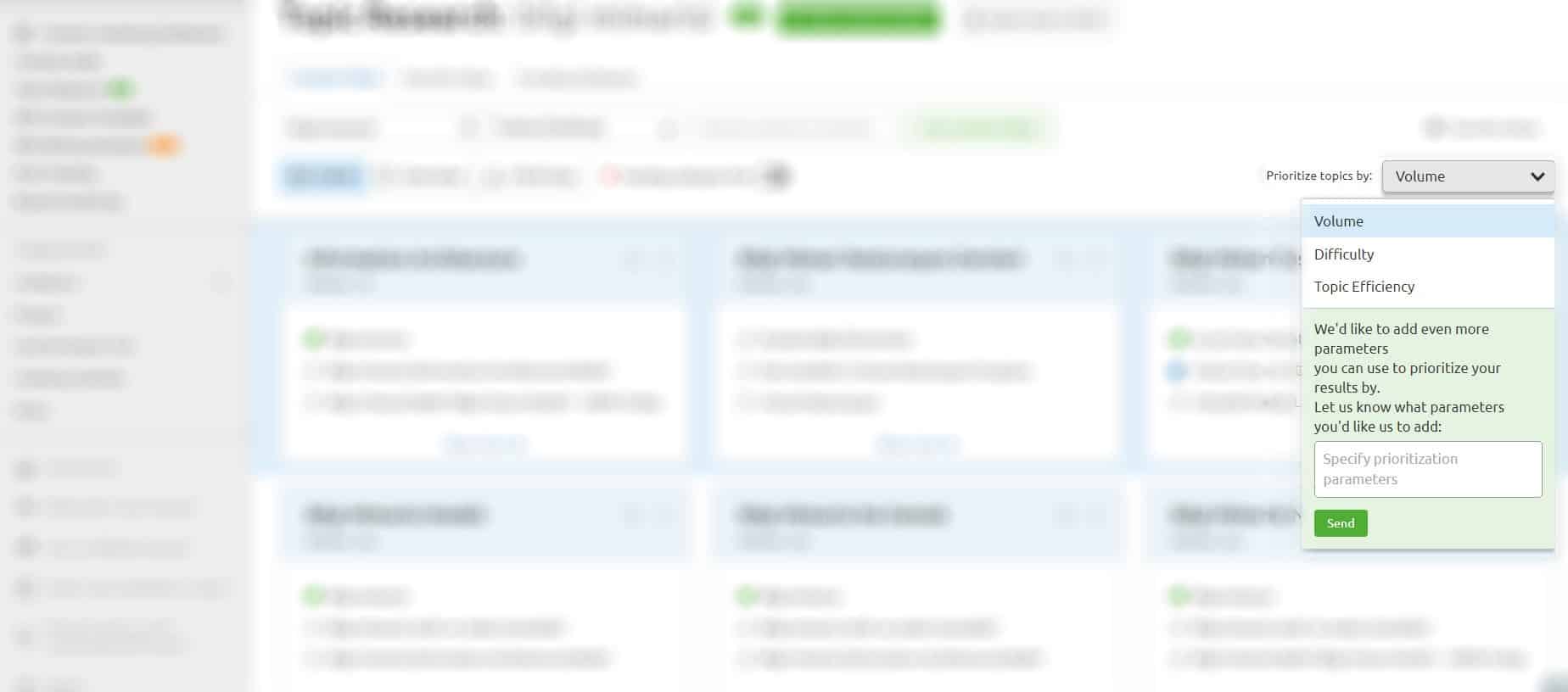 Topic efficiency (Konu Etkinliği): Konuları hem arama hacmine hem de zorluk derecesine göre sıralatmak için.