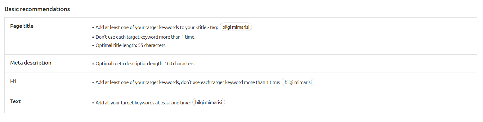 Bonus İpucu: Bu tür araçların Türkçe için çok iyi sonuçlar vermeme ihtimalini dikkate almanızda fayda var. SEO uyumlu içerik ile “keyword stuffing”i birbirine karıştırmamak gerekir. Araçtaki skoru iyileştirmek adına içeriğinizde birtakım düzenlemeler yaparken, okuyanlara saçma gelecek gereksiz tekrarlardan kaçınmamızı tavsiye ederiz. Unutmayın; içeriğimizi arama motorları için optimize ediyoruz, ancak aynı zamanda insanlar okusunlar ve etkileşimde bulunsunlar istiyoruz.
