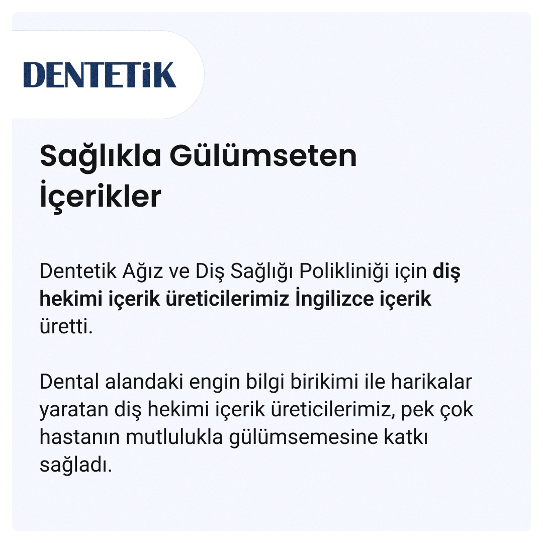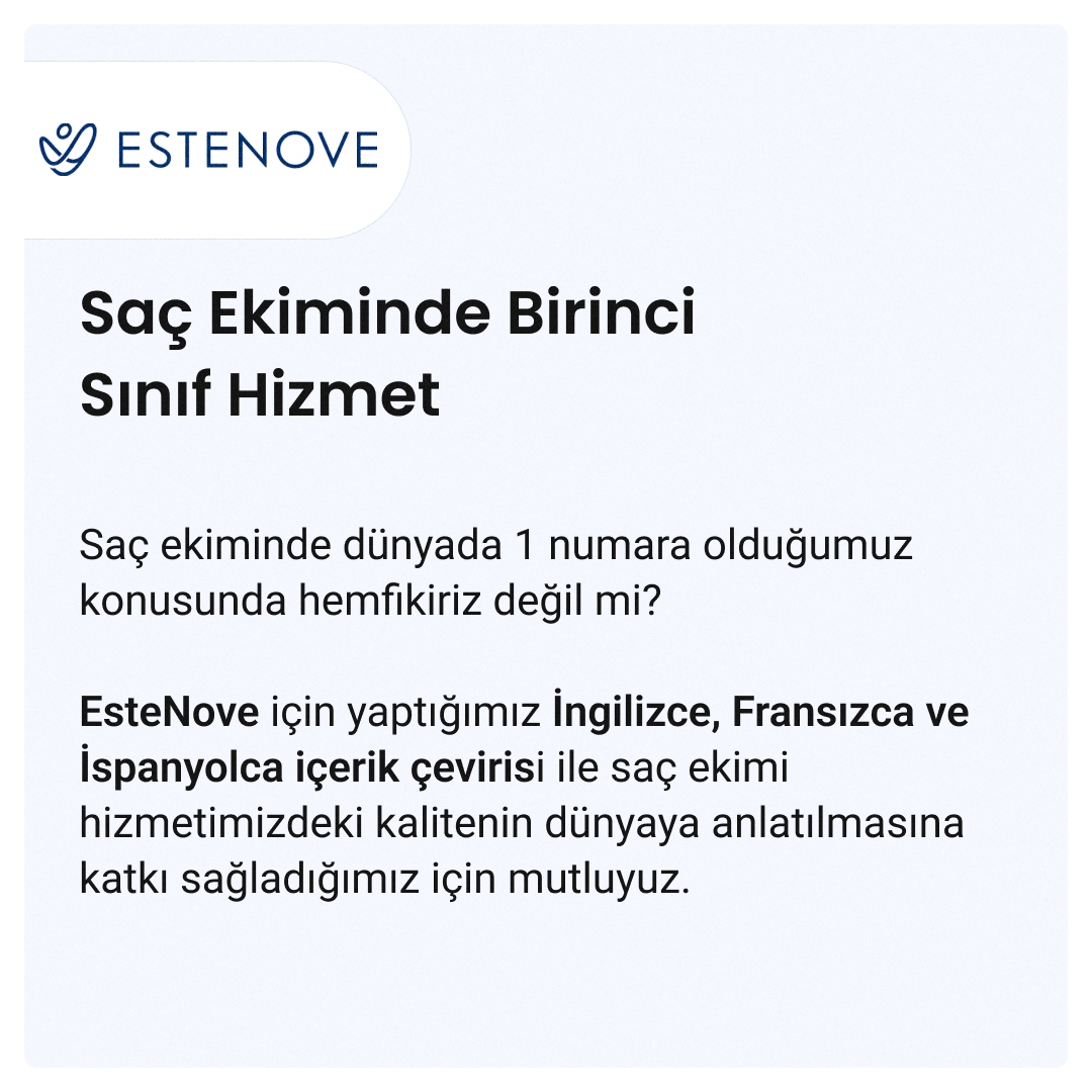 💊 Sağlık turizmi markaları için farklı dillerde, profesyonel ve SEO uyumlu içerik üretimi ve çeviri hizmeti sunarak sağlık hizmetlerimizdeki kaliteyi dünyaya anlatmalarına katkı sağlıyoruz.