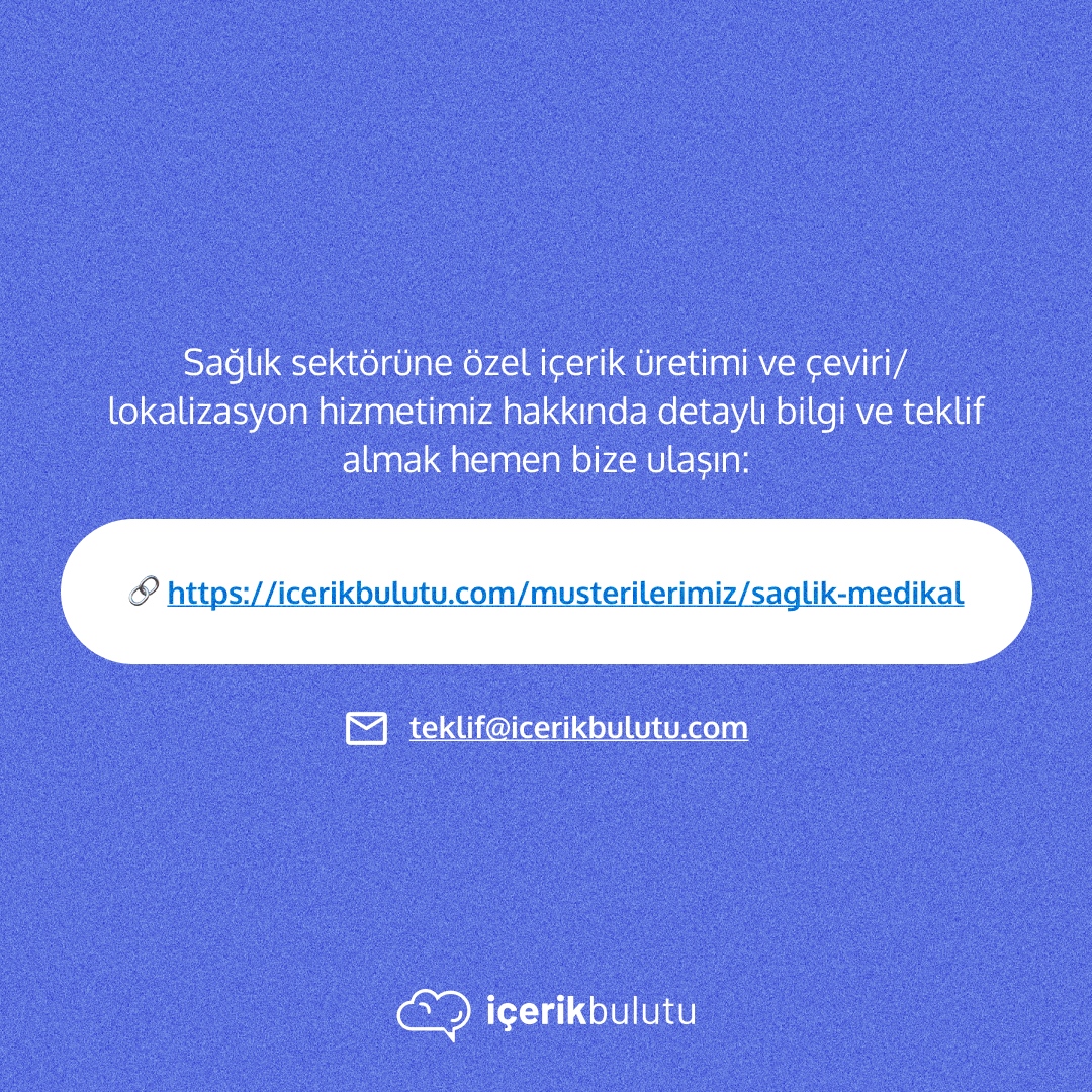 Sağlık grupları, hastaneler, tıp merkezleri, klinikler, ilaç firmaları… Sıkı regülasyonlara tabi sağlık-medikal alanının öncü markaları gibi siz de hedef kitlenize İçerik Bulutu’nun profesyonel içerik çözümleriyle ulaşmak için hemen bize ulaşın: https://icerikbulutu.com/musterilerimiz/saglik-medikal