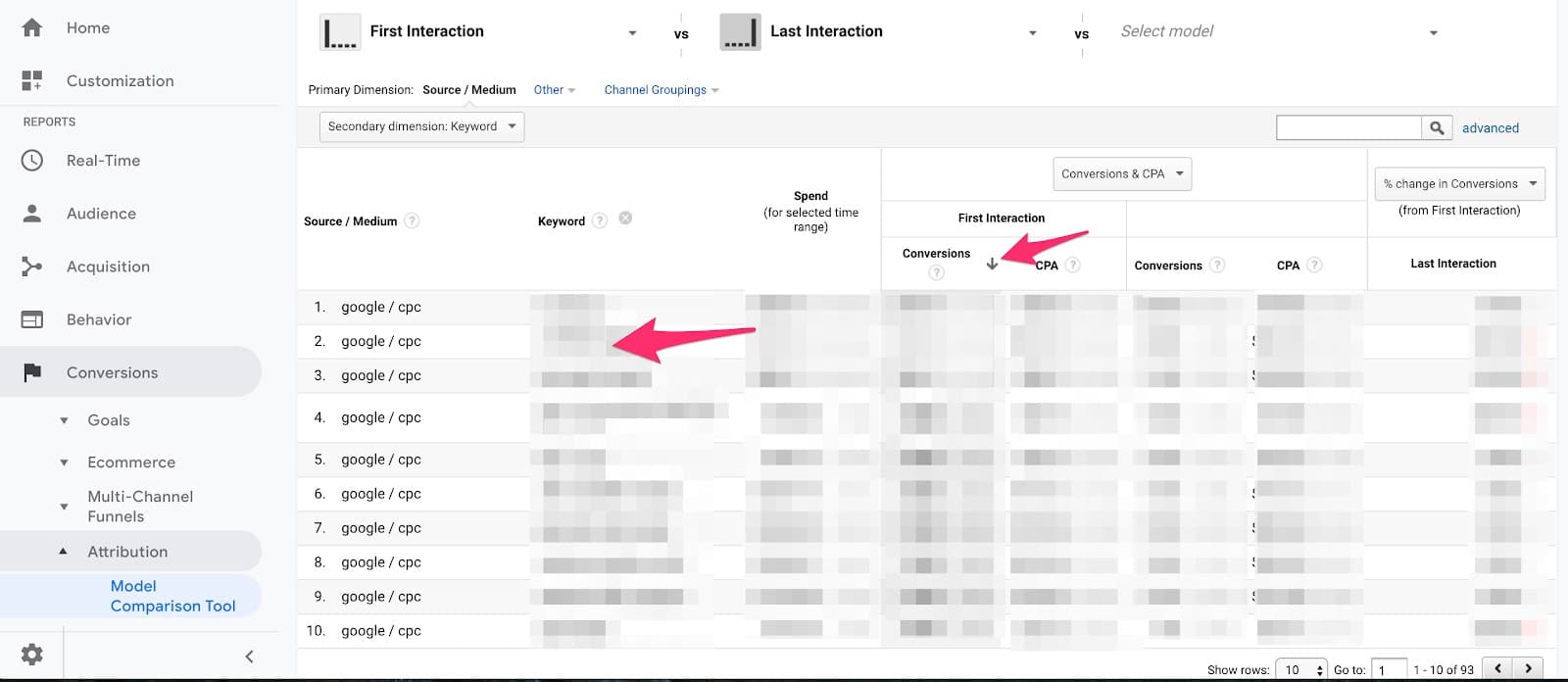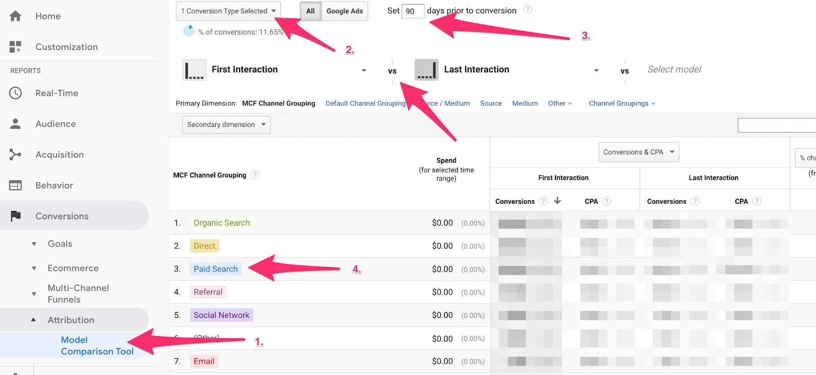 Google Analytics’te dönüşüm hedefiniz kurulu ise “Model Karşılaştırma Aracı”na gidin ve dönüşüm getiren anahtar kelimeleri bulmak için “Paid Search” kategorisine tıklayın.