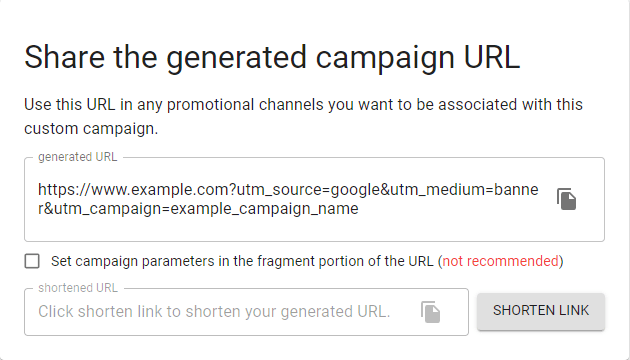 Bilgileri doldurduğunuzda, Google URL oluşturucu, kampanyalarınızı izlemek için hemen kullanabileceğiniz UTM kodunu sizin için görseldeki gibi otomatik olarak oluşturacaktır.