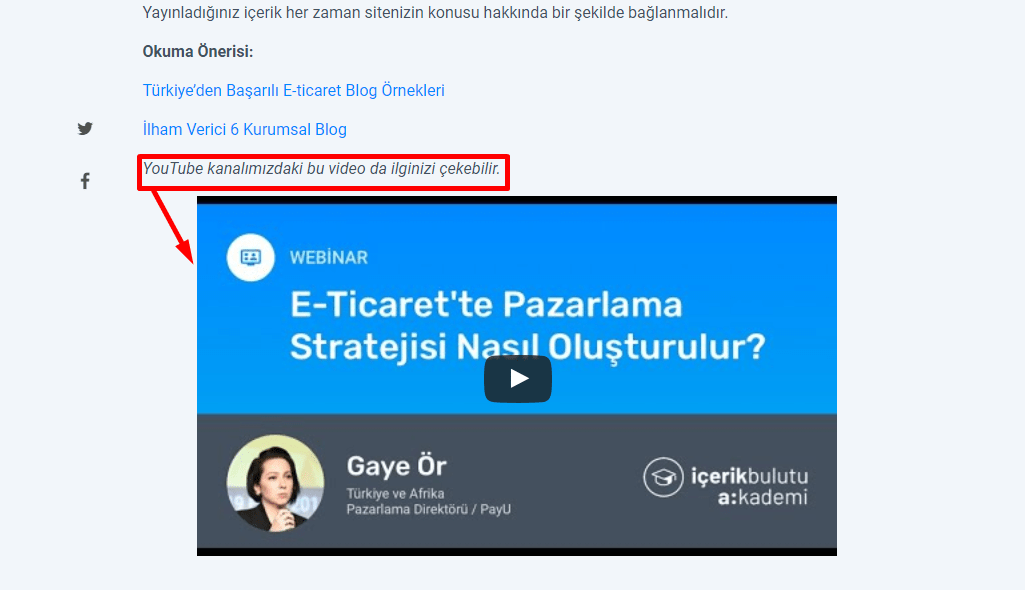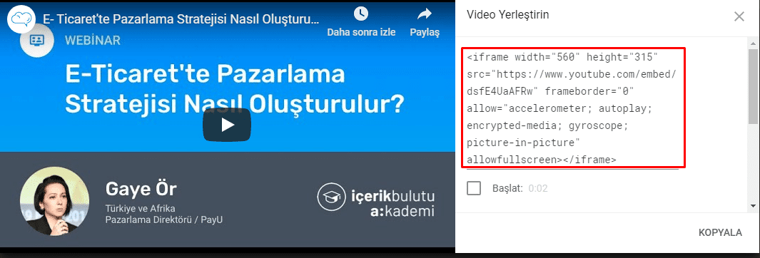 İçerik Bulut Akademi’de içeriklerimize YouTube videolarmızı aşağıdaki örnekteki gibi ekliyoruz.