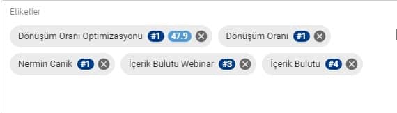 Örnek olarak, fotoğrafta gördüğümüz üzere bir webinarımız dönüşüm oranı optimizasyonu üzerine olduğundan ilk etiketimizi “dönüşüm oranı optimizasyonu” olarak oluşturuyoruz.