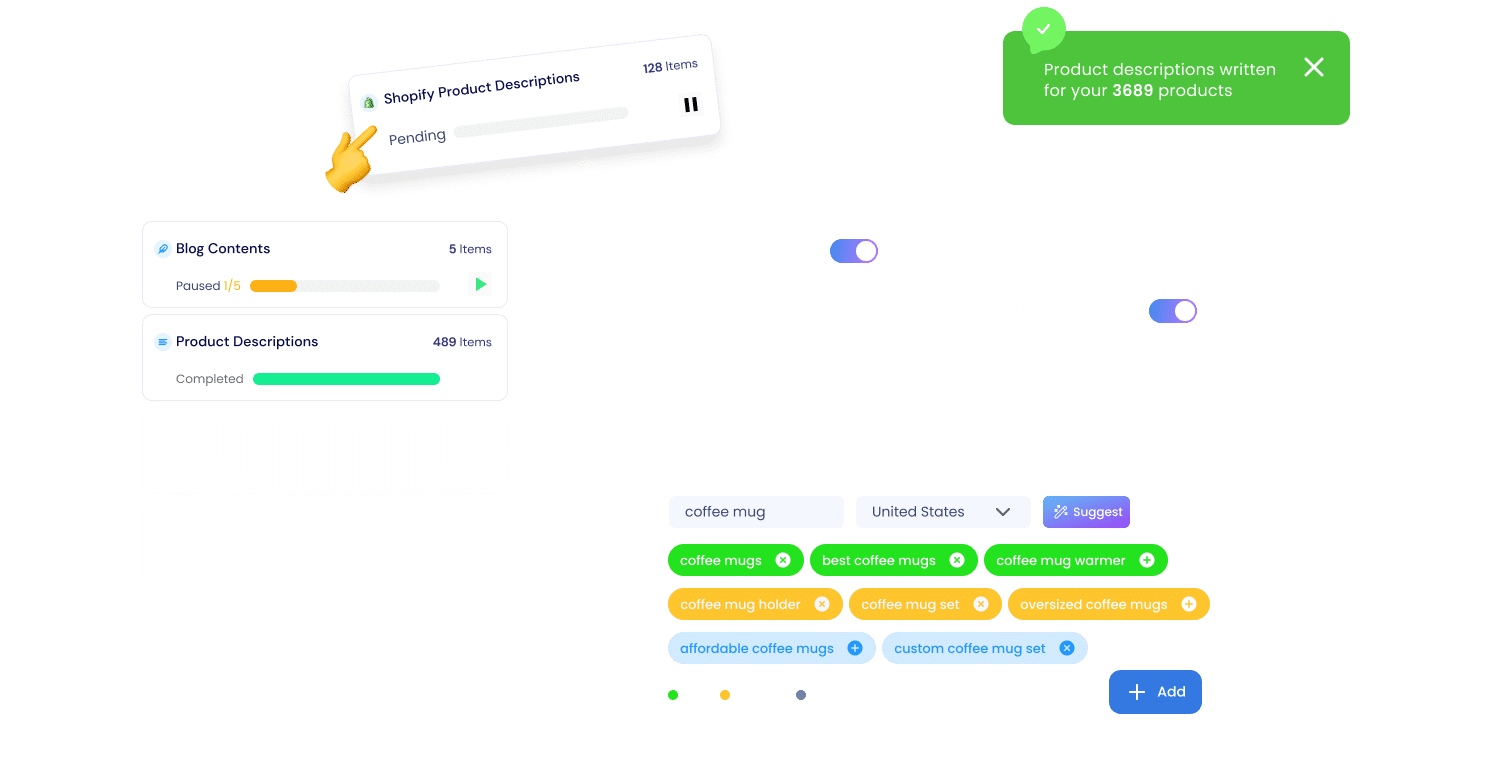 Yüzlerce, binlerce içeriği kısa sürede üretin. E-ticaret, katalog ve ürün açıklamaları için ideal.