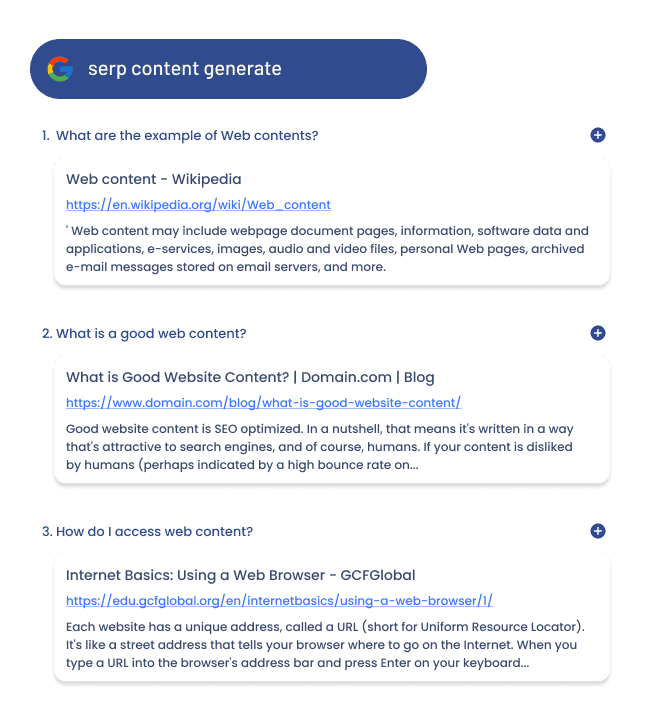 İstediğiniz soruları seçip brief'inize ekleyin. İçeriğiniz bu soruları yanıtlayacak şekilde üretilir.