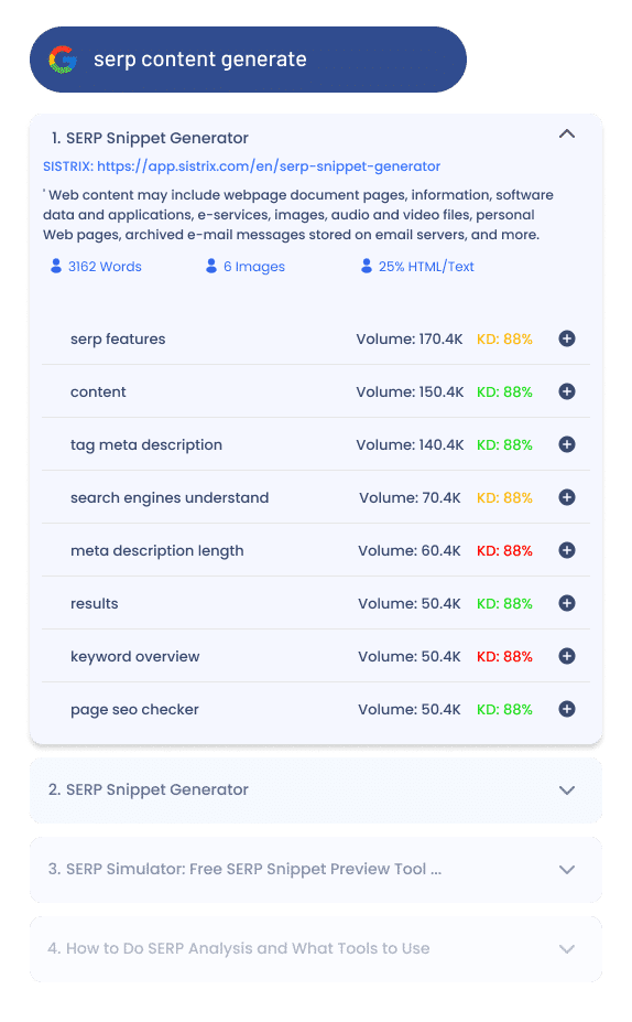 Anahtar kelimenizle ilgili tüm ara sonuçlarını görün. Tek bir konuda derinleşin, otorite kazanın.